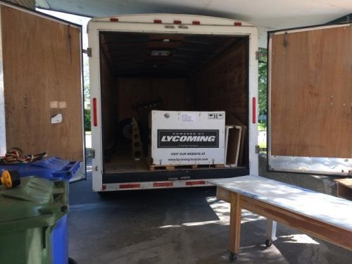 2 jours sur la route pour aller chercher mon nouveau kit de RV-9A. Ce kit a été commencé par un autre personne qui à abandonné le projet, faute de temps. Tout le travail qui a été fait jusqu'à maintenant est extrèmement bien fait. Je peux donc continuer où il était rendu sans problème et sans crainte. Seul un nouveau Service Bulletin émis par Van's va me forcer a faire quelques modifications sur l'aile, mais c'est vraiment rien de majeur, et tout est encore très accessible. J'ai déjà hâte de commencer, mais il faut débuté par démeller tout ça et ranger toutes les pièces....