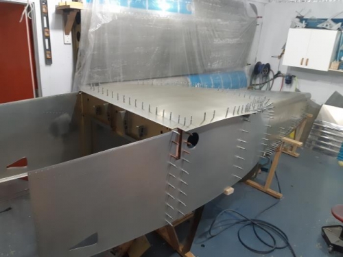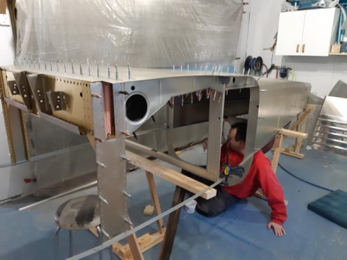 - On a commencer le tout en mettant les 3 banc support au niveau et parfaitement aligné. - On a inséré le longeron principal du fuselages sur la partie arrière. - Puis on a inséré la partie central sur la partie arrière. - Assemblage des cotés. - Percage des trous pour les marche-pieds. - Percage des accoudoires sur la tole du coté. - Roulage de la partie arrière/bas de la tole de coté. Et j'ai commencé à percer le longeron principal.. J'ai le quart de ce travail de fait. On va terminé ça au court de la semaine.....