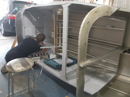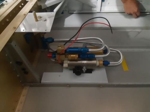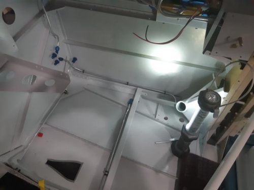 Pendant que je travail sur les contrôles, Renaud s'occupe de la tubulure des freins et de la pompe à essence !