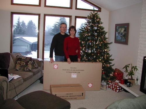 The biggest surprise of my life… Debbie gave me an RV-9a empennage kit for Christmas. One of the best presents ever…