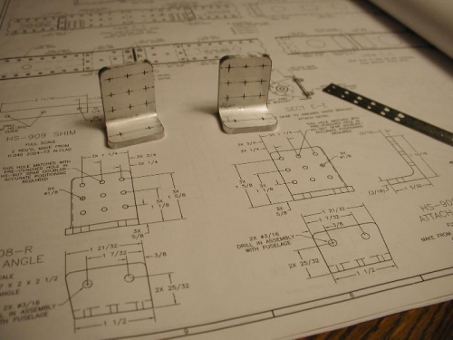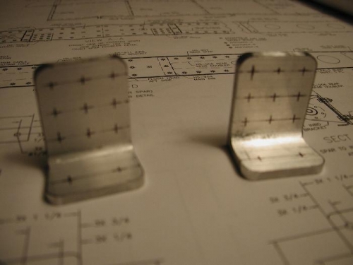 Rough cut and filed both brackets to finish size. Need to get a Scotchbright wheel so I can debur and polish the brackets. Next step is to drill the 9 #30 holes in each attachment bracket.