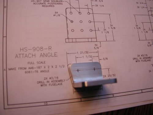 ,,,after further scrutiny, I didn't cut the angle on the side of the brackets correctly (see image 3). First Oops! Oh well, I need to take some paperwork down to Van's anyway and will pick up some new angle and try it one more time.