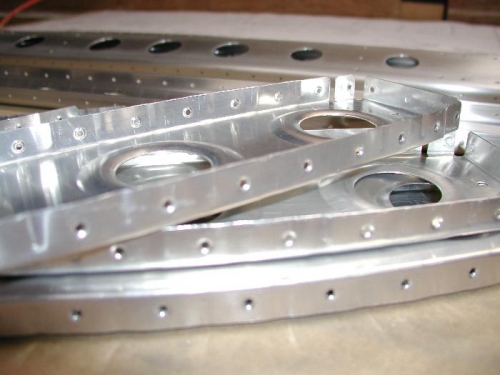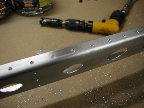 Deburred the ribs and used the vise-grip dimpler to set the dimples. Deburred the right HS skin and set up the counter-sink cage to counter-sink the right HS spars.