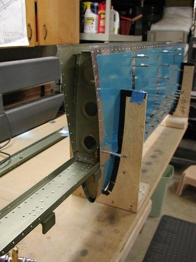 Riveted the outboard nose rib to the front spar. Put the three pop rivets in the mid nose rib to spar to main rib (hint: bend the main rib slightly out of the way to make room for the pop rivet tool head). Started riveting the inboard nose-rib-to-spar-to-main-rib and began having all kinds of trouble. The short story is this is a very difficult set of rivets to put in due to the angle of the ribs in relation to the spar, limited access for the bucking bar due to the HS-908 angle brackets and the length of the rivets. I have drilled out more bent rivets than I care to admit (8+) on one side. I talked to Van's and they shared the following advice: It's ok to bend the main rib back to open up some working space. Do not try to use a double-offset rivet set because they never work. Instead use a single-offset rivet set, tape the set to the rivet gun so it doesn't try to spin while riveting and work with two people - one running the gun and one of the bucking bar. You also need to use the heaviest bucking bar you can fit into the work space. I have ordered the single-offset rivet set and am looking forward to being done with these rivets... what a pain. I have not done any riveting on the skin until I get the three inboard front spar rivets done in case I end up needing to replace some parts. Oh! Van's also said, "Get those three rivets in the best you can and get on with building. They don't need to be perfect, just set so none of the edges of the hole are visible. Boy, am I ready to move on with the project. The flush skin rivets are a piece of cake compared to all the trouble I have had with this set of three rivets.