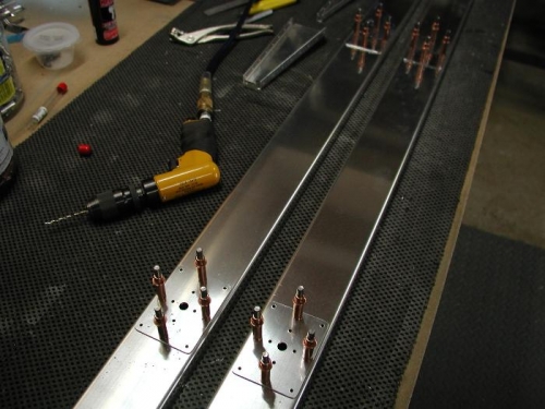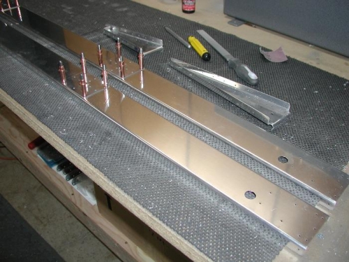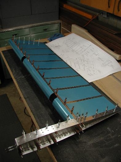 Drilled and deburred the #30 holes in the E-910 reimforcement plates on both spars. Clecoed the end rib and spar into the right Elevator and also clecoed on the counter balance assembly. Match-drilled all the #40 and #30 holes. Drilled the bottom spar to skin holes to #30 as I am planning to use the CS4-4 blind rivets on the bottom. Took the whole assembly apart and deburred all the holes.