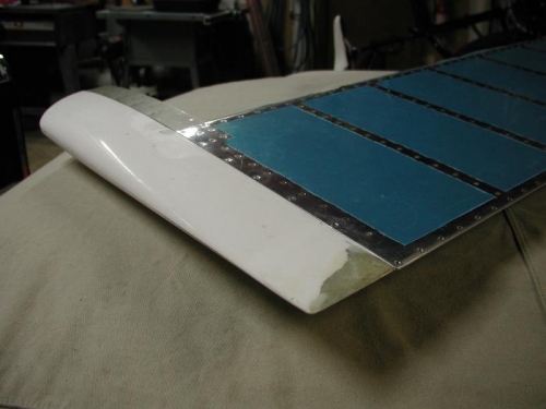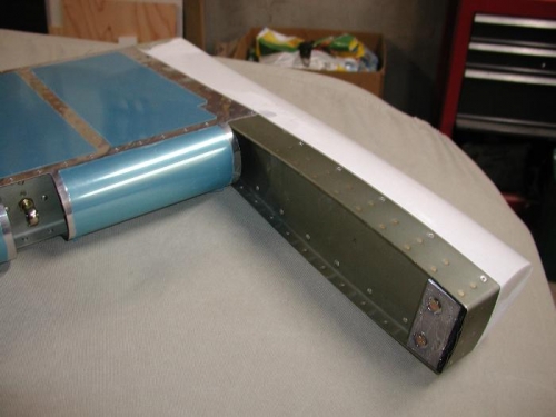 Positined the tip on the Elevator and match-drilled the holes... was carefule to hold it in position and to put a cleco in place after each hole was drilled. Deburred the holes and dimpled the holes in the Elevator using the hand squeezer. Used the drill stop and machine countersink to countersink the holes in the fiberglass tip. Fasted the counter weights to the counter balance arm and torgued the nuts to 25 inch pounds. Clecoed the tip into place and set the CS4-4 blind rivets. I wasn't planning to fiberglass the joint between the Elevator and the tip, but the way it fits or maybe the lack of fit is making me lean towards filling and fiberglassing the joint and the blind rivets to give it a nicer finish for painting.