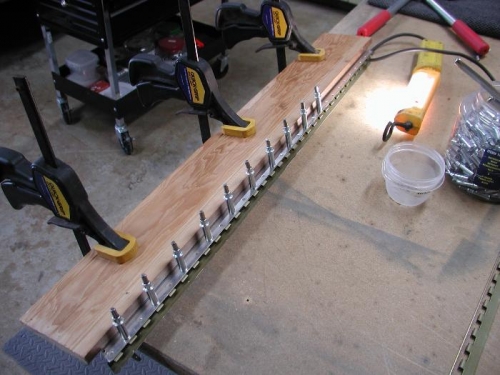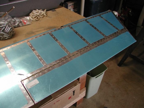 Back to the trim tab hinge and installation on the left Elevator. I cut the new hinge to size. As I mentioned before the trim tab had a slight twist so I clamped the trim tab firmly to the bench before match-drilling the hinge to the tab (see image #1). Positioned, match-drilled, deburred and primed the hinge. With the trim tab stilled clamped to the bench I clecoed the hinge onto the trim tab and then squeezed the rivets... when complete the trim tab was almost perfectly straight. Next I carefully positioned the trim tab on the left Elevator and it aligned nicely with the trailing edge this time... woo hoo! Drilled and deburred the hinge, clamped it into position and set the rivets. When completed the trim tab fits and looks great. Next step will be adding the fiberglass tip to the left Elevator.