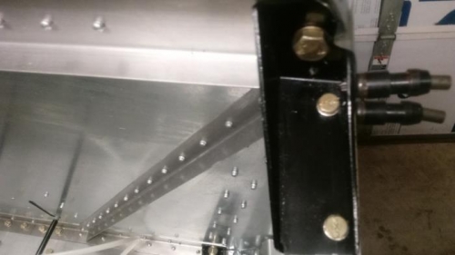 Installed internal motor mount connecting gustes 75F14-1, 75F14-2, use AN3-5 bolts on top and bottom Plans called for AN3-4 bolts on the top mount but there were no threads showing past the nut so I replaced with AN3-5