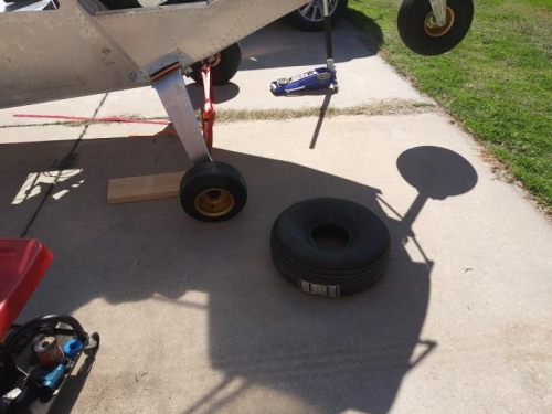 tismounted the Tundra Tires and put some small lawn and garden tires on to save the tundra tires and also allow the plane to to go in and out of the the trailer with out contacting the wheel wells of the trailer. Test fitted the hozontal, Installed the motor mount bushings