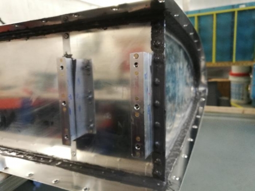 12:45 Prepped parts for pro seal. Sealed and rivited baffle plate to skin. Sealed and rivited z brackets to bafle. Sealed all rivet shop heads with pro seal. Prepped fuel senders for L and RH. Sealed and rivited anti rotation brackets L & R. Final torqued fuel pick up bulkhead fittings for L & R. Pro sealed and fixed both fuel senders mounting plates to inspection covers. 18:00