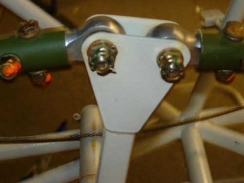 torqued rod end bearings and rod fittings. Installed torque seal; Prepared and put in epoxy the head rest panel and avioncs access panel; Fabricated 6 tabs and welded the same to trailing gear leg tubing to attach brake line; drilled holes in gear leg cross member to accept brake line.