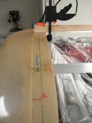 laid out trim line on cowling to 1 inch. Re-drilled final stiffener location at cowl. Started laying out shims to be attached to stiffeners.