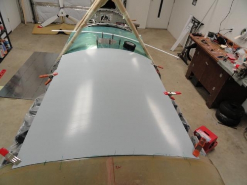 Installed nut plates ( 8-32 floating) on all stiffeners; Layed out pattern for top cowling and then cut .032 sheet aluminum. Started fitting.
