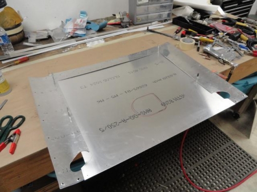 Flush riveted upper 2 cowling stiffeners; Decided to rebuild the sheet metal over the fuel tank because it was a bit flimsy at .025. Since I have lots of .032, I thought I would make the improvement. So, using the .025 panel, I layed out, cut and drilled to match.