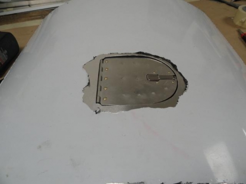 Finish work on the gas tank access door; Completed door jam cut out and prepped for drilling and dimpling.