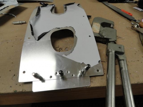 Drilled and prepared gear panels for nut plates. Installed nutplates and finished fit; same thing for panel that attaches around exhaust tunnel; Prepared, trim fit, and installed nut plates to rear belly panel. More tedious work