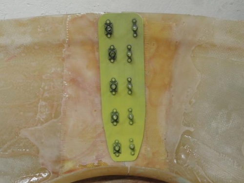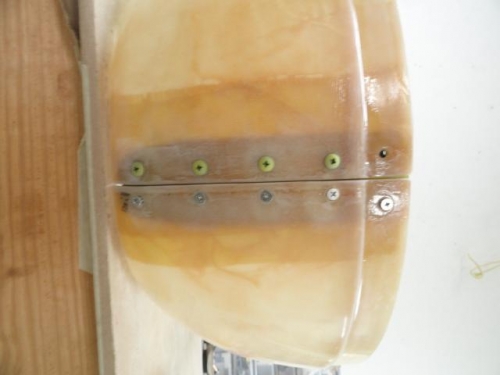 Much sanding and fitting of cowl halves where they mate, and to smooth out the additional cloth I laiyed up. Prepd and painted with epoxy the flanges that join the two halves. Did finish application of epoxy with peel ply for leveling.