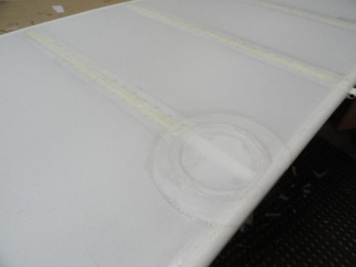 Heat formed all tapes on left horizontal stab; heat bonded pinked tapes; installed two inspection ports.