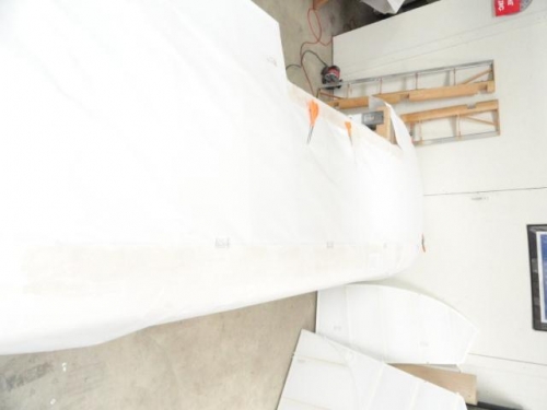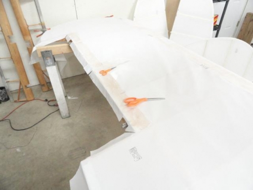 Various work on tail feathers. Install drain grommets. start covering underside of right wing