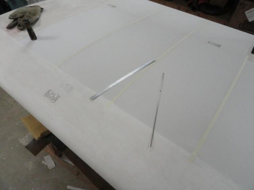 Installed aileron cove tapes. Layed out bottom of left wing for stitches. Installed some stitches.