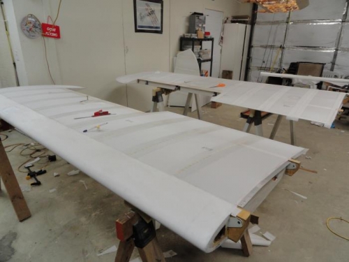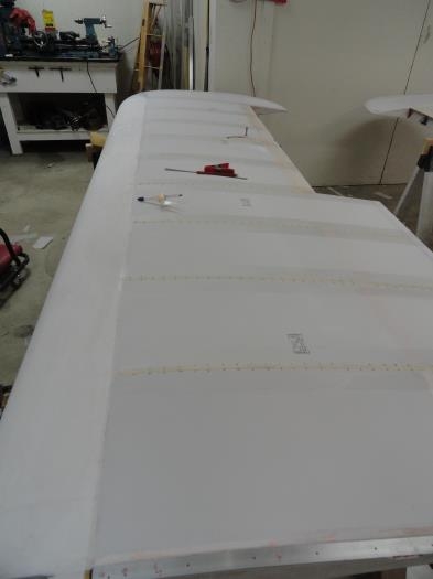 Finished stitching left lower wings and prepared for rib tapes by cleaning and applying two coats of thinned adhesive. Each wing took 255 stitches or about 30 hours in actual stitching of both wings.