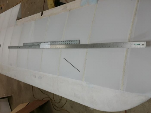 heat shrunk under side of upper wing 250, 300, and 350 degrees. heat formed in aileron cove. Over the past two weeks, I have worked the upper wing although not logging the progress.Lots of heat shrinkng around the bows as expected. Ran out of -3 fabric and picked up the new -4. Definite difference. More difficult to get adhesive to wet through. So, thinned a bit more.