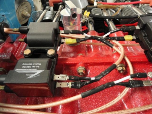 Routed Ignition cables; installed baffling and drilled same to accept cable; Installed protected braiding over the sensor wires and installed adel clamps as well.