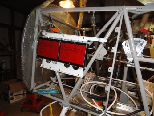 Using some 3/4 aluminum angle and 4 adel clamps I fabricated attach strips to attach the mounting plate to support the electronic ignition. Then painted