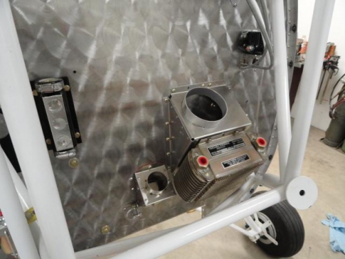 I did a final inspection of the fuel line fittings, rechecked the torques on fuel line fittings, Applied torque seal. Installed 15 or so adel clamps at various points along the back of the fire wall to attach backer plates and, where there was no backer plate, attach to the fuselage tubing. Routed cables and electrical through firewall fiittings; installed hot air box and connected cable; installed oil cooler box and oil cooler; installed backer plate for battery box. Installed upper engine mount bolts and torqued.