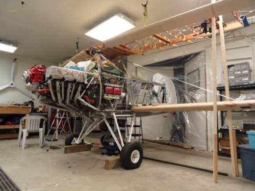 Begin installing Upper and lower wings for rigging. Construction of rigging boards; begin leveling the airplane