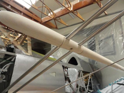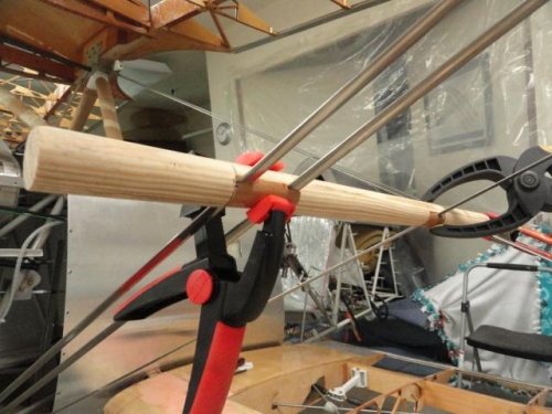 fabricated from pine dowel flying wire torpedoes; sand, prep, stain and varnish