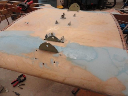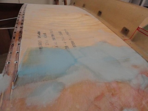 Filled and blended areas around the joints using super fil to make good transition across joint. Prepare and intalled 6 hinges for upper wing. Torqued to 25 inch lbs. Polished hinges and cleaned before installing. Torque seal applied.