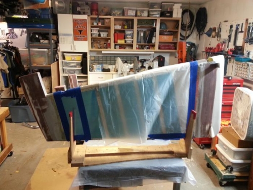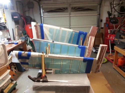 Brushed, degreased, alodyned and masked off the elevator and rudder tips. Humidity is 85%, so no priming. Looks like I may get a chance on Wednesday. So, I covered everything up and will wait it out.