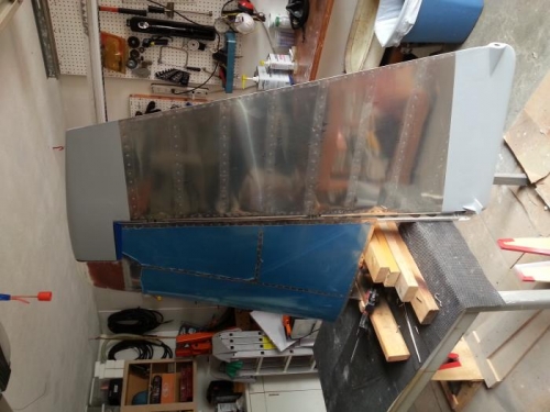 The right elevator is very foreward-heavy. I'm guessing it's due to the epoxy I used to mold and secure the fairing to the counterweight shape. To balance it, I placed 6.85oz, 8" aft of the hinge line.