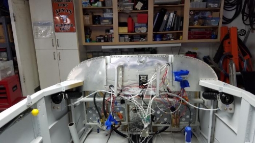 Spent about a dozen hours spread over the Thanksgiving Holiday weekend finishing the Intercom wiring harness. I bought the pre-made harness from Aircraft Spruce because there is a lot of shielded cable with multiple grounds. I figured since radio noise can be difficult to isolate, better to get a professionally made harness and save those labor hours. Anyway, still had to make the connections to the rest of the SkyView system. The other big labor effort was fabricating the mounting plates for the headsets. After reviewing what several other builders did, with their pros and cons, I went with placing them directly below the vents. That way they are visible and easily accessible, but they are also tucked up under the canopy rail and out of the way. In order to get this done I had to actually install the canopy vents. I had delayed that during fuselage construction as I did not know if I would have any wiring to do in that area. At this point with most of the wiring done, I decided I won't.