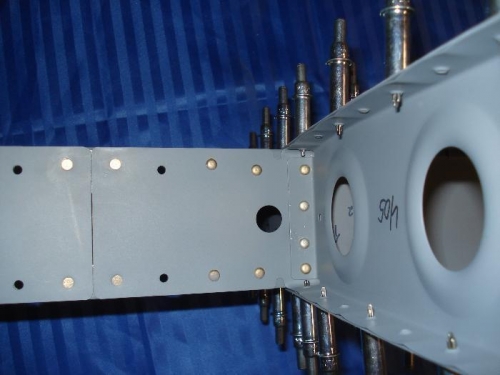 Riveted the HS 810 and the 814 to the HS 702. I have a smiley on the left top that I have to fix. The HS 404 and 405 was also riveted to the HS 702