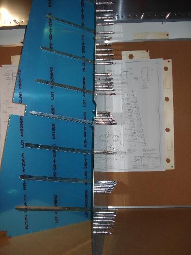 After a quick debur and radius, the stiffeners were clecoed to the skin for match drilling.