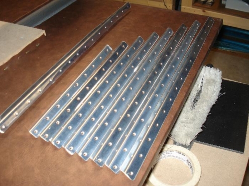 Stiffeners and the rudder skin was deburred, scotchbrited, cleaned and primed.
