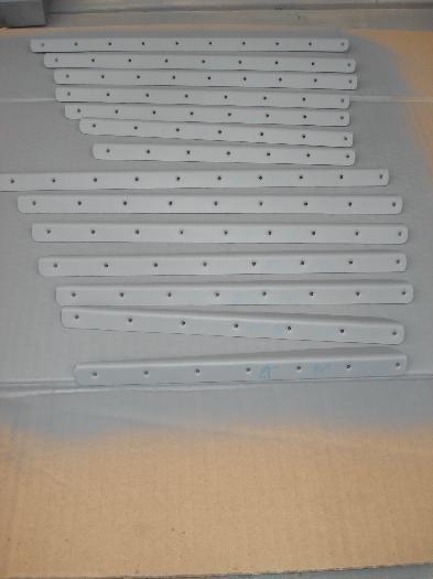 Finished scotchbriting, cleaning, marking, and then priming the right elevator stiffeners.