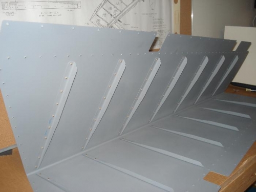 The key here is to rivet the trailing edge stiffeners on one side first...and only the first two rivets, then reverse the process for the other side.