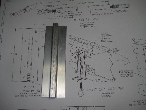 Started the fabrication of the tie-down assembly. Had to measure the spacers from the stock aluminum, located the centres for the holes and used my step drill. Much easier to drill the holes before cutting the stock.