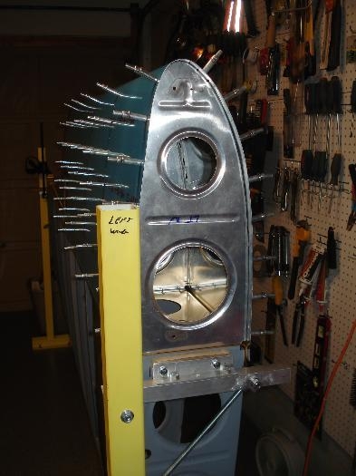 I decided to move onto the leading edge of the left wing while I wait for my order of clecos. I set W-701 skin into the cradle and removed the vinyl. I numbered the ribs and placed them into the cradle one at a time and started clecoing from the leading edge every second hole.