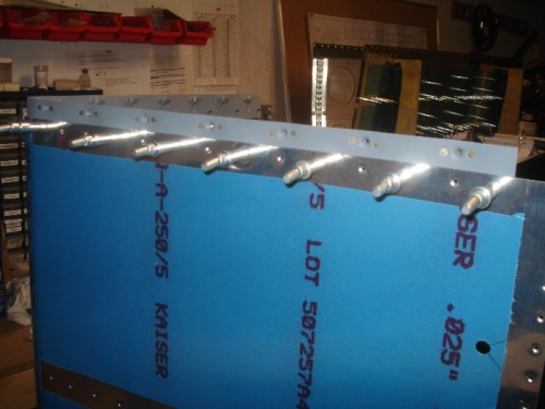 Deburred, cleaned and primed the right wing leading edge/fuel tank joint plate.