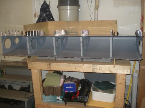 Riveted the right wing leading edge ribs to the skins and the joint plate.as well.
