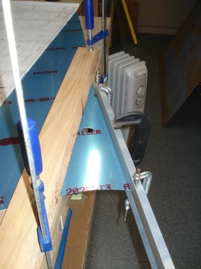 Rolled the conical joint of the skin. I used a piece of oak, cut to 45 degrees, and then clamped. Pretty easy actually if you follow the instructions.