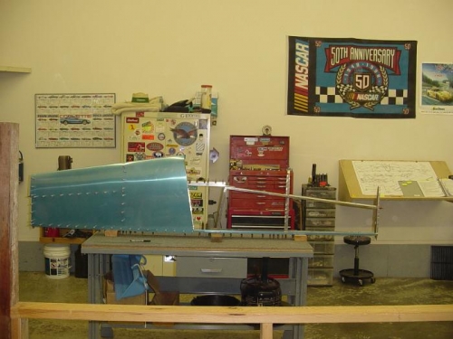 More tools arrived today. Fluted ribs and drilled to spars. Clecoed left skin to frame.