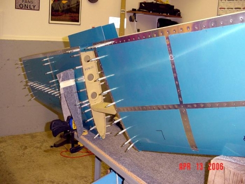 Rivet frame and skin on HS. Left side interior rivets done. Start on right side.