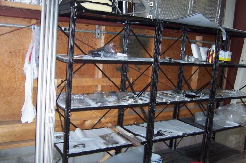 Moved into rented hanger with Tug at the airport. Nice to have some room. $2000./year rent. Bolted rudder into place.