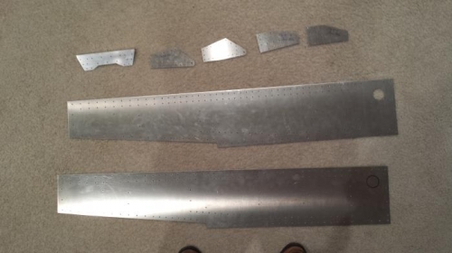 This week I have made both W10-05 main spar doubler webs, the W04-04 aileron attach plates and the F-16-07 shear plates. I still need to drill out the large hole in one of the spar doubper webs.
