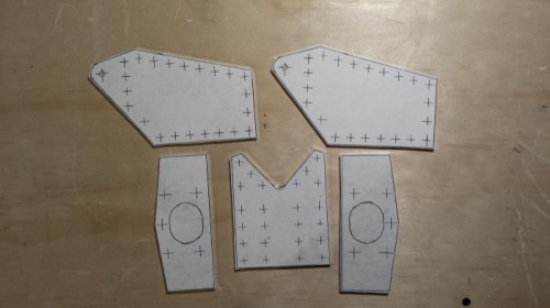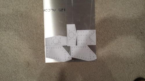Spray glued the patterns onto the metal and rough cut the parts out. Will finish the final drilling and sanding tomorrow.